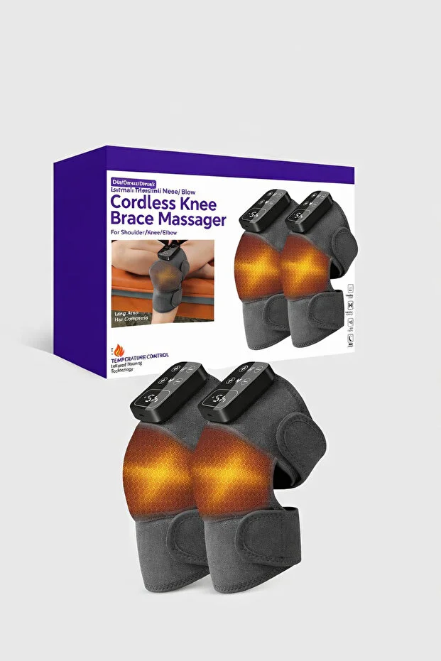 2 adet şarjlı ısıtmalı titreşimli masaj aleti, diz, omuz, kol ve bacak bölgelerinde kas gevşetmeye yardımcı olur. Kablosuz ve taşınabilir kullanım.