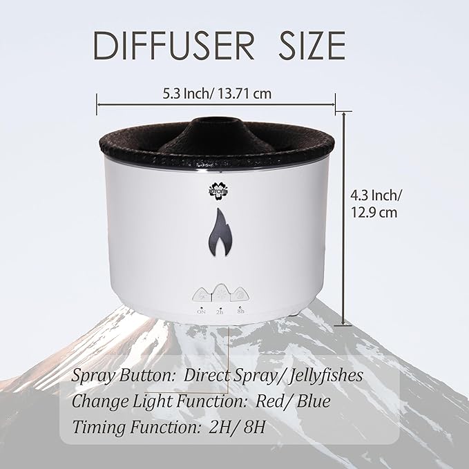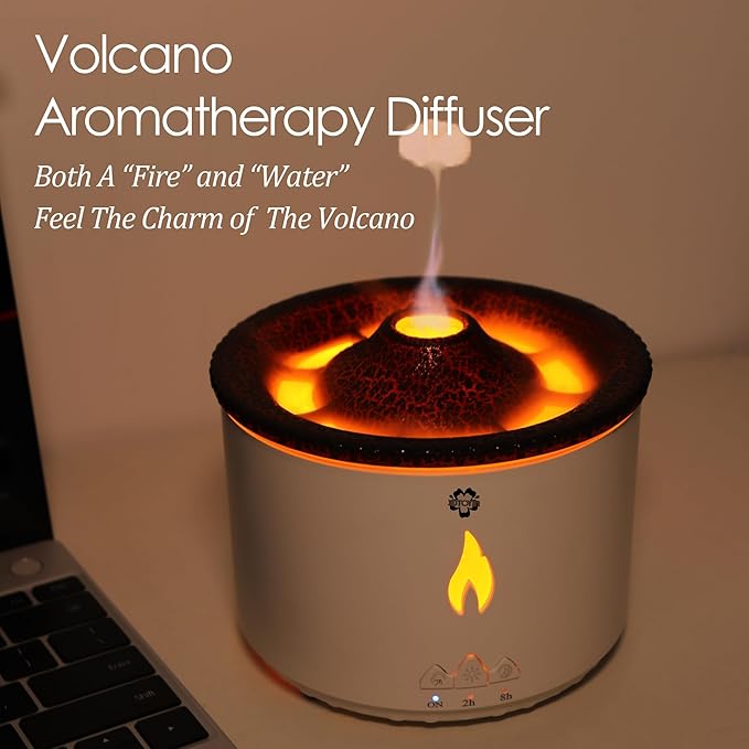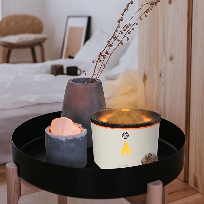 Alev Difüzörü 300 ML, modern tasarımı ve volkan/alev efekti ile yaşam alanlarınıza hem görsel hem de fonksiyonel bir katkı sağlar. Şömine ve volkan görünümünü andıran özel aydınlatma efekti, bulunduğu ortama estetik ve dikkat çekici bir atmosfer kazandırır.