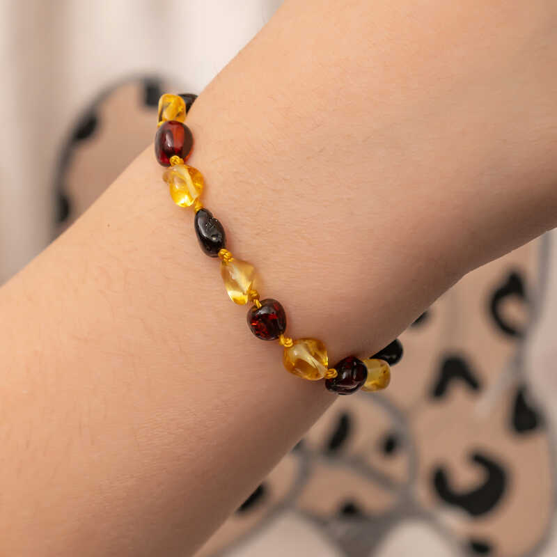 Kehribarın hem fiziksel hem metafiziksel etkisi vardır. Özellikle bebeklerin sağlığına önemli katkılar sağlayan kehribar taşı, bebeklerde sıklıkla görülen boğaz ve kulak ağrılarını dindirir. Bebeklerin en önemli sorunlarından biri olan diş çıkarma dönemindeki ağrı ve huysuzluk belirtileri de kehribar sayesinde oldukça hafiflemektedir. Aynı zamanda kehribar para taşı olarak bilinir. Bereketi arttırdığına inanılır. Kehribar bileklik olarak kullanıldığında astım, alerji, guatr, tiroid gibi şikayetlerde gerileme sağlar. Aynı zamanda kehribarın ağrı kesici etkisi bel ağrısı, baş ağrısı migren gibi şikayetlere iyi gelir. Kehribar bileklik eklem ve romatizmal ağrılarda etkilidir. Aynı zamanda negatif enerjilere karşı koruyucu etki eder. Kehribar aynı nazar boncuğu gibi etki sağlar. Ten teması ve ten ısısı ile etki eder. Kehribar bileklik bölgesel etki eder. İpek iplikten yapılmıştır, her boncuğun arası ayrı ayrı düğümlüdür. Kehribar bilekliklerin arkasında gizli plastik vidalı klips vardır. Kehribarın etkisini göstermesi kişinin bünyesine ve büyüme atağına bağlı olarak 24 ila 72 saat arasında zaman almaktadır. Bebekler için 0-5 yaş için kullanımı uygundur. Kehribar kullanıldıkça ve tena temas ettikçe etkisini gösterir. Bileklikler herkes için en gözde süsler arasındadır. Kehribar şıklığından ödün vermeyen bebeklerin severek kullanacakları bir aksesuar olacaktır. Ürünlerimizin tamamı el emeği ile üretilmiştir ve değerli taşlar nedeniyle ürün ağırlığında ± %10 sapma olabilmektedir.