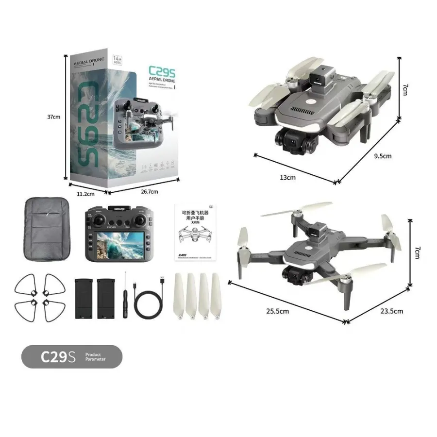 C29S 4K GPS Drone, çift kamera sistemi ve GPS destekli konumlandırma özelliği ile stabil uçuş sağlayan katlanabilir bir drone modelidir. Taşınabilir tasarımı sayesinde kolayca taşınabilir ve farklı ortamlarda kullanılabilir.