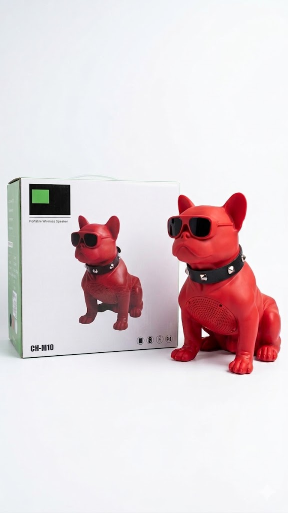 CH-M10 modeli, ikonik bulldog tasarımıyla dikkat çeken, dekoratif ve fonksiyonel bir kablosuz hoparlördür. Gözlük ve tasma detaylarıyla premium bir görünüm sunarken, güçlü ses performansı ile günlük kullanımda tatmin edici bir deneyim sağlar.