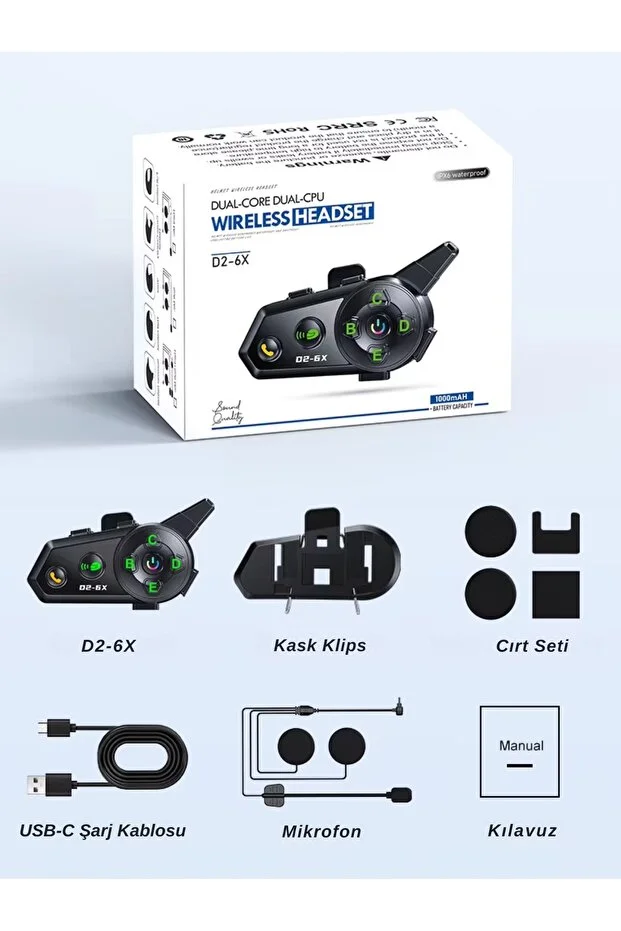 D2-6X Bluetooth motosiklet kask kulaklığı, uzun menzilli iletişim ve çoklu kullanıcı desteği ile grup sürüşleri için ideal bir intercom çözümüdür. 1000 metreye kadar bağlantı mesafesi sayesinde sürüş sırasında diğer kullanıcılarla kesintisiz ve güvenli iletişim kurabilirsiniz.