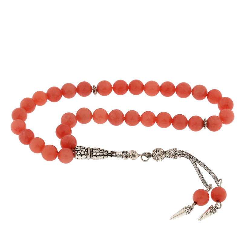 Doğaltaş Metal Püsküllü Pembe Yeşim Taşı Tesbih