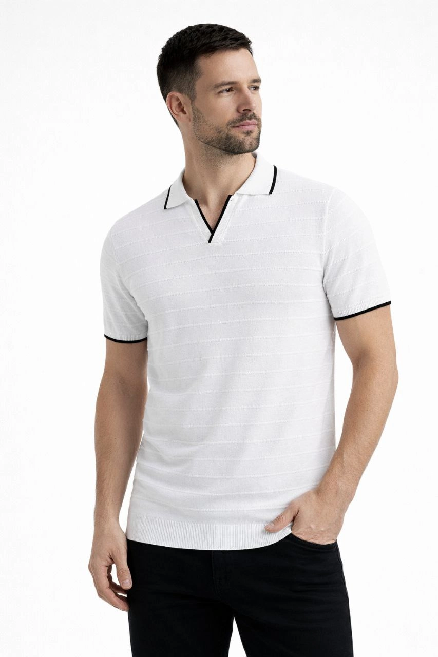 Erkek 3’lü Paket Triko Yakalı Düğmesiz Açık Yaka Fitilli Kısa Kollu Regular Fit Tişört –