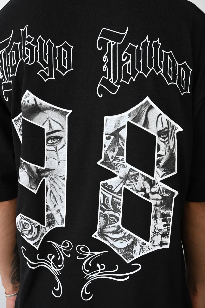 erkek Baskılı Oversize T-Shirt – Siyah