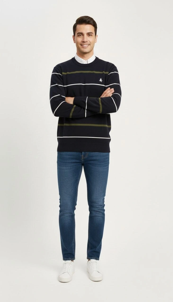 Be the first to review “Erkek Bisiklet Yaka Cizgili Triko Kazak yumuşak dokulu Pamuklu ince Dokuma uzun – Lacivert”