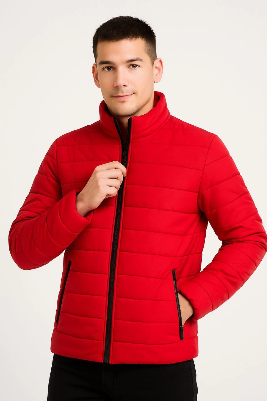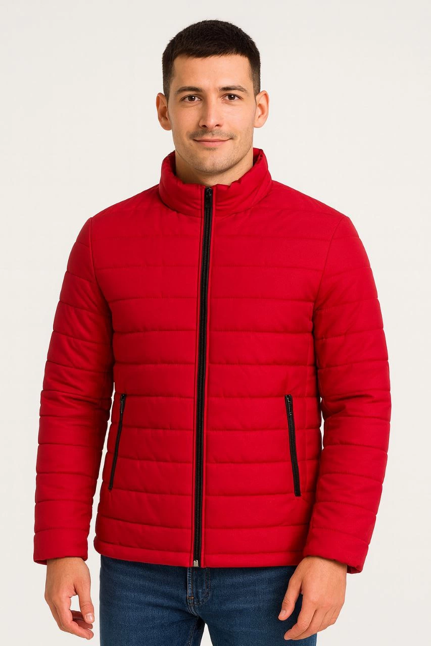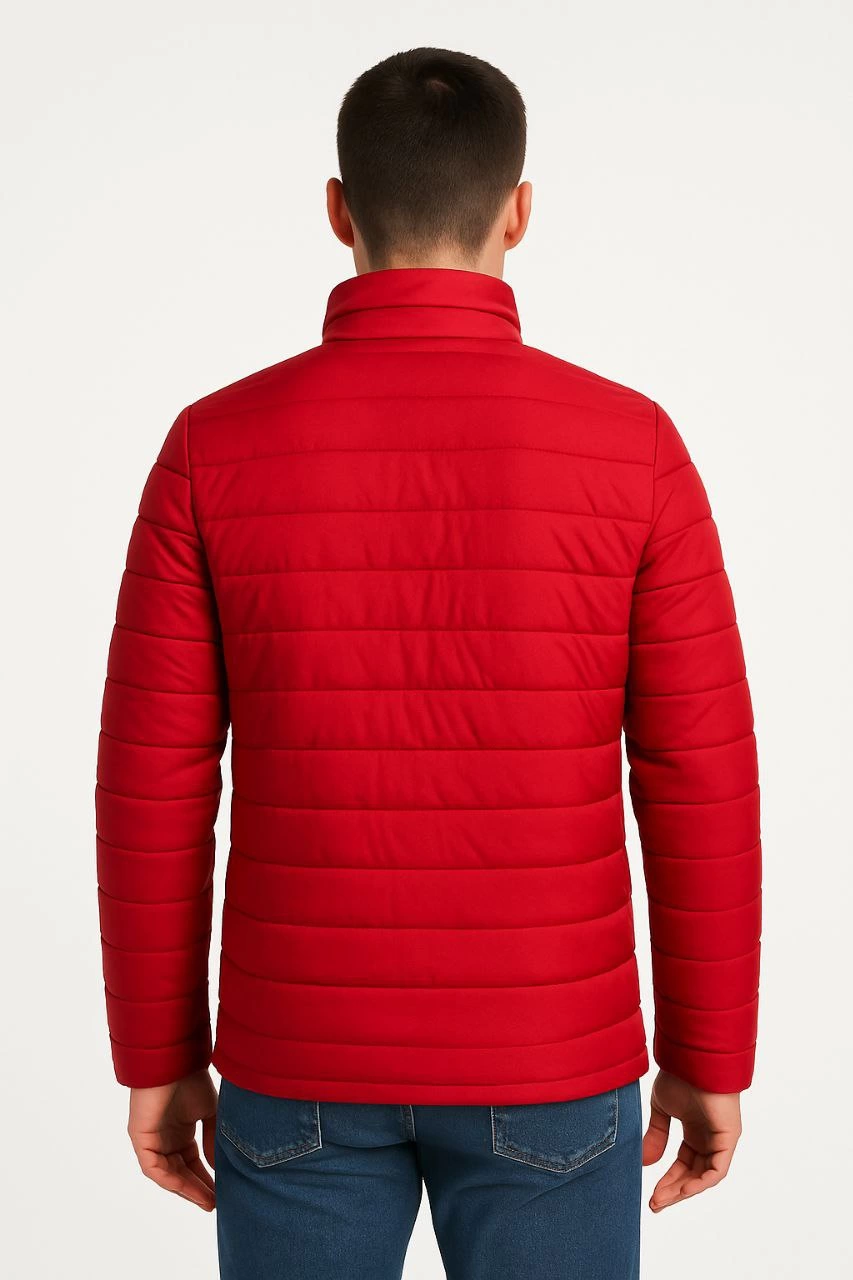 Erkek Bomber Mont Ceket – Su İtici Kumaş, Kapitone Astarlı, Fermuarlı, Kışlık – Kırmızı