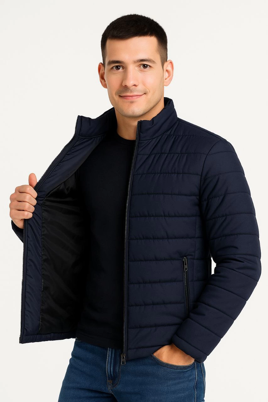 Erkek Bomber Mont Ceket – Su İtici Kumaş, Kapitone Astarlı, Fermuarlı, Kışlık – Lacivert