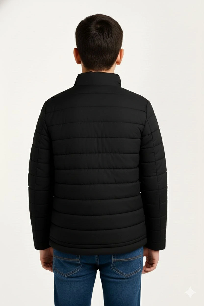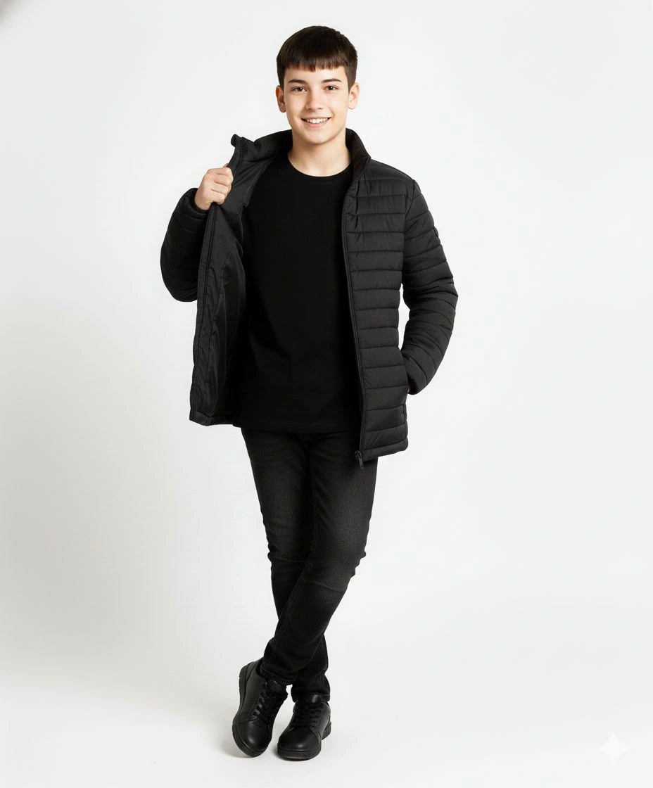 Erkek Çocuk Şişme Mont Hafif ve Sıcak Tutucu Fermuarlı Su İtici Mont Kapüşonuz – Siyah