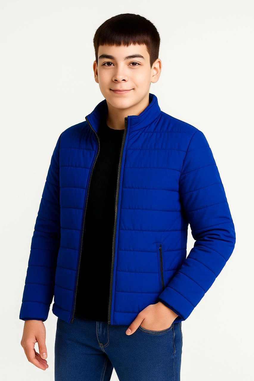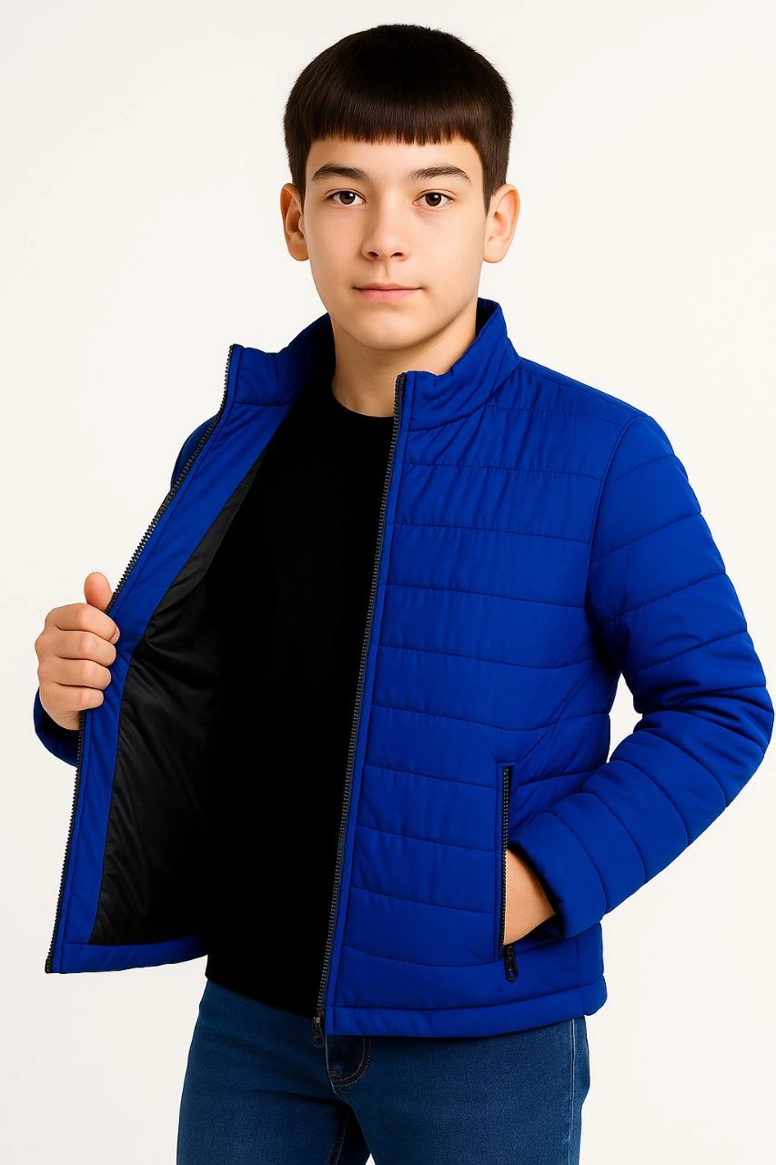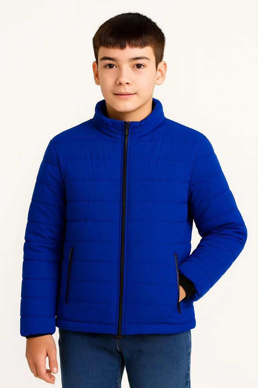 Erkek Çocuk Şişme Mont Hafif ve Sıcak Tutucu Fermuarlı Su İtici Mont – Saks Mavisi
