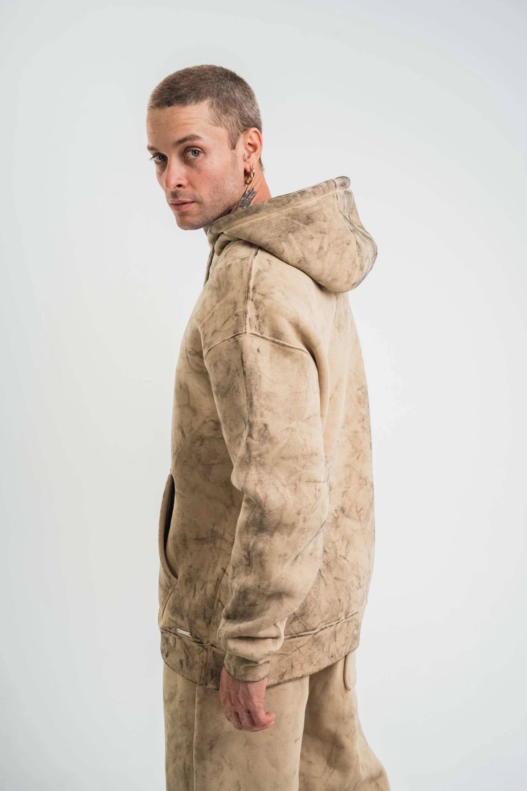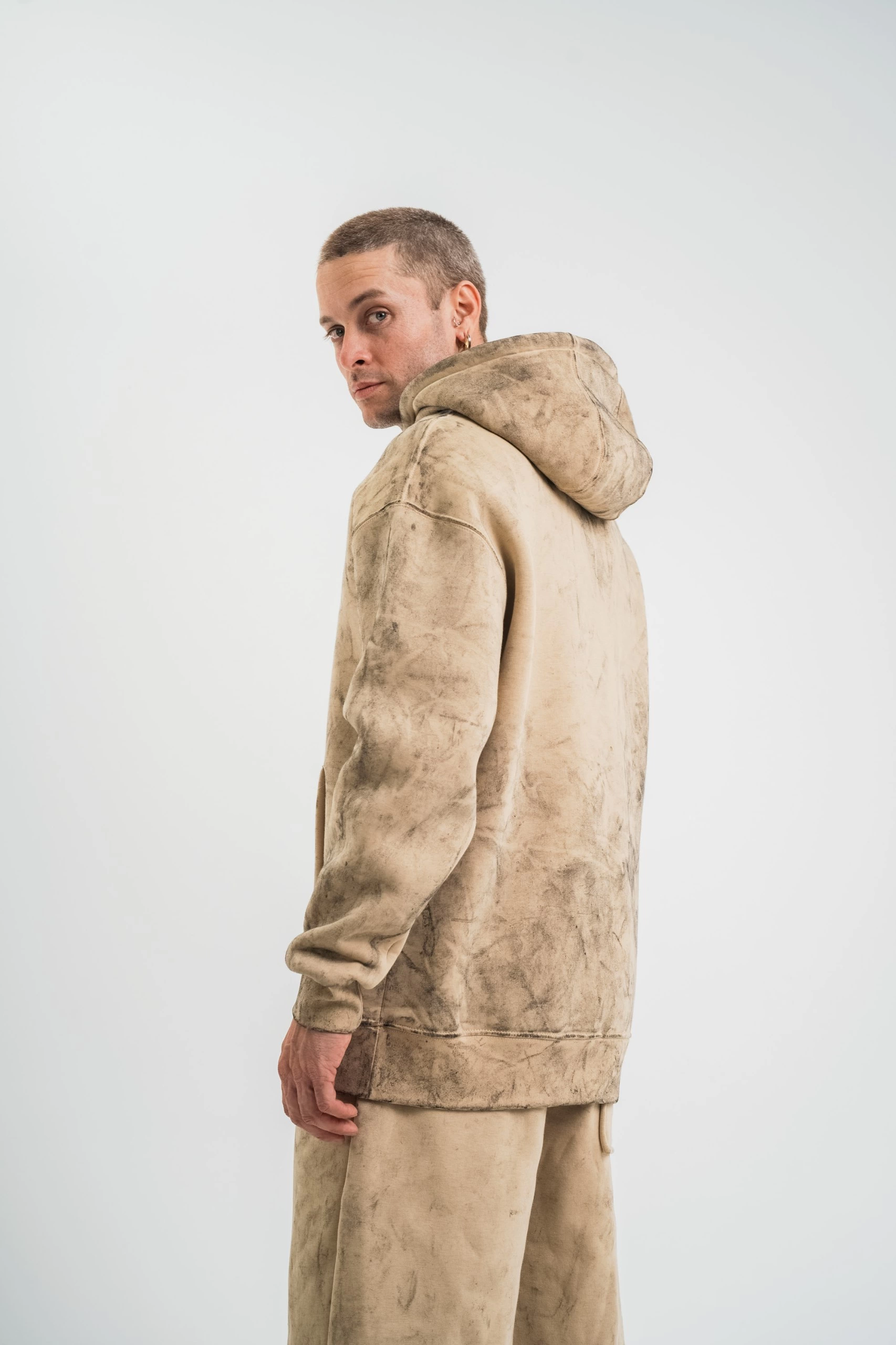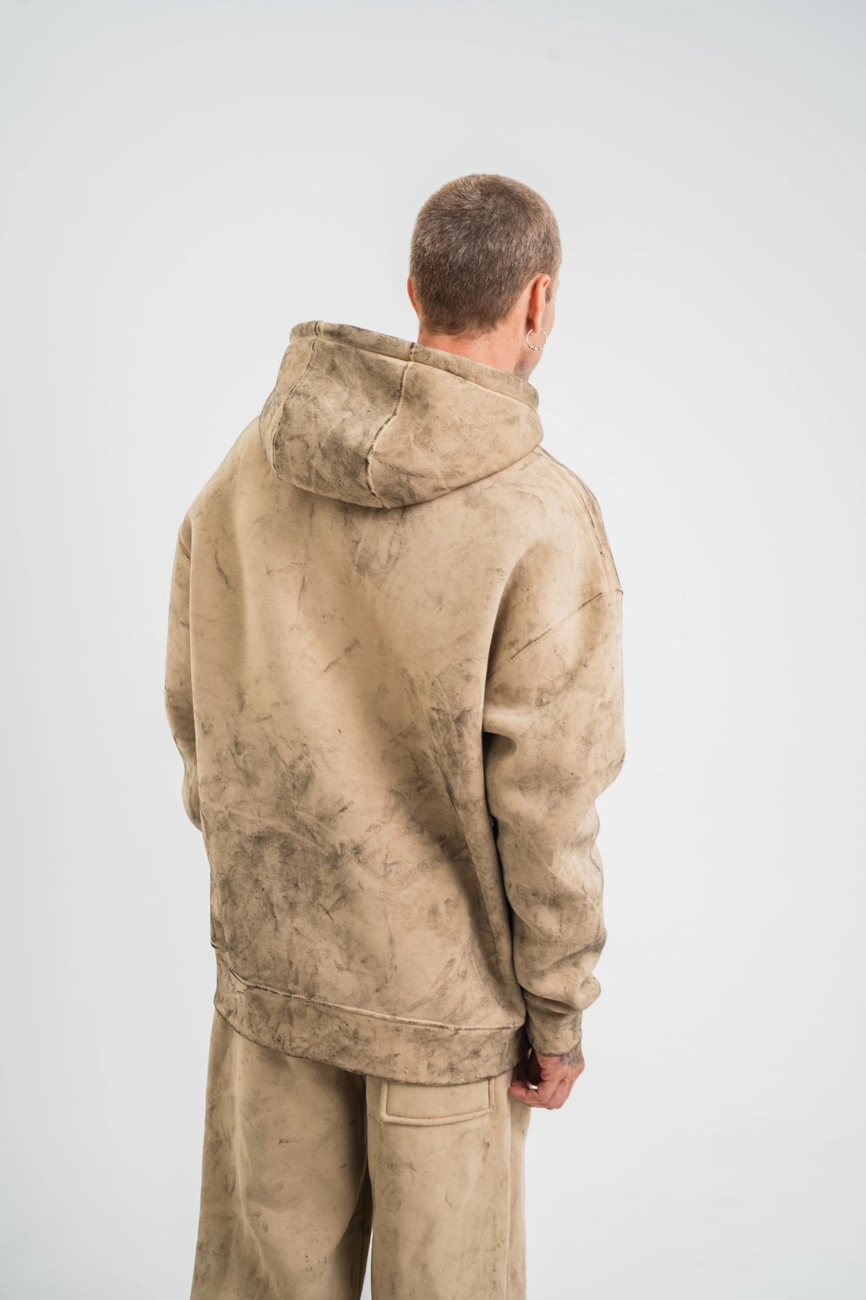 ERKEK Double Oversize Kapşonlu Yıkamalı SweatShirt – Bej
