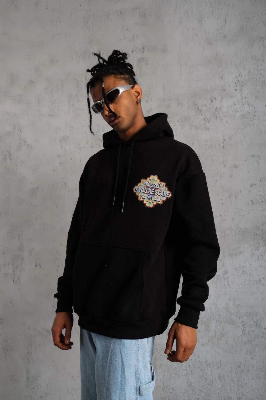 Erkek Kilim Desen Kapüşonlu – Siyah