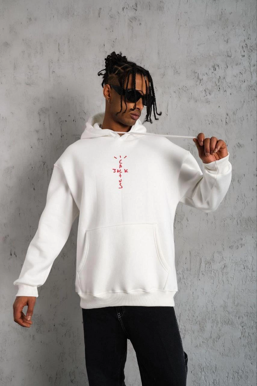 Erkek Kordonlu Arka Maske Kordon Saçlı Kapüşonlu – Beyaz