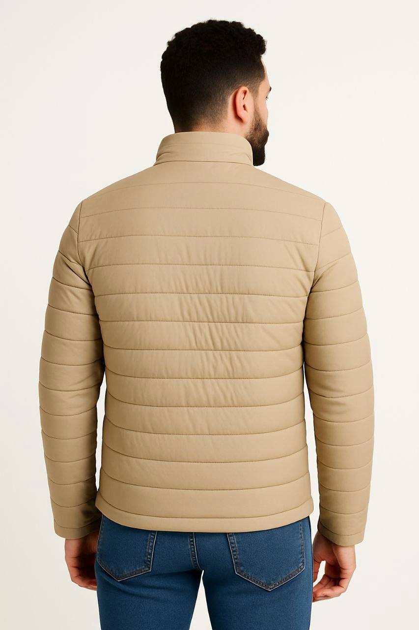 Erkek Mikro Su İtici Kapitone Baskılı Astarlı Fermuarlı Bomber Mont – Bej