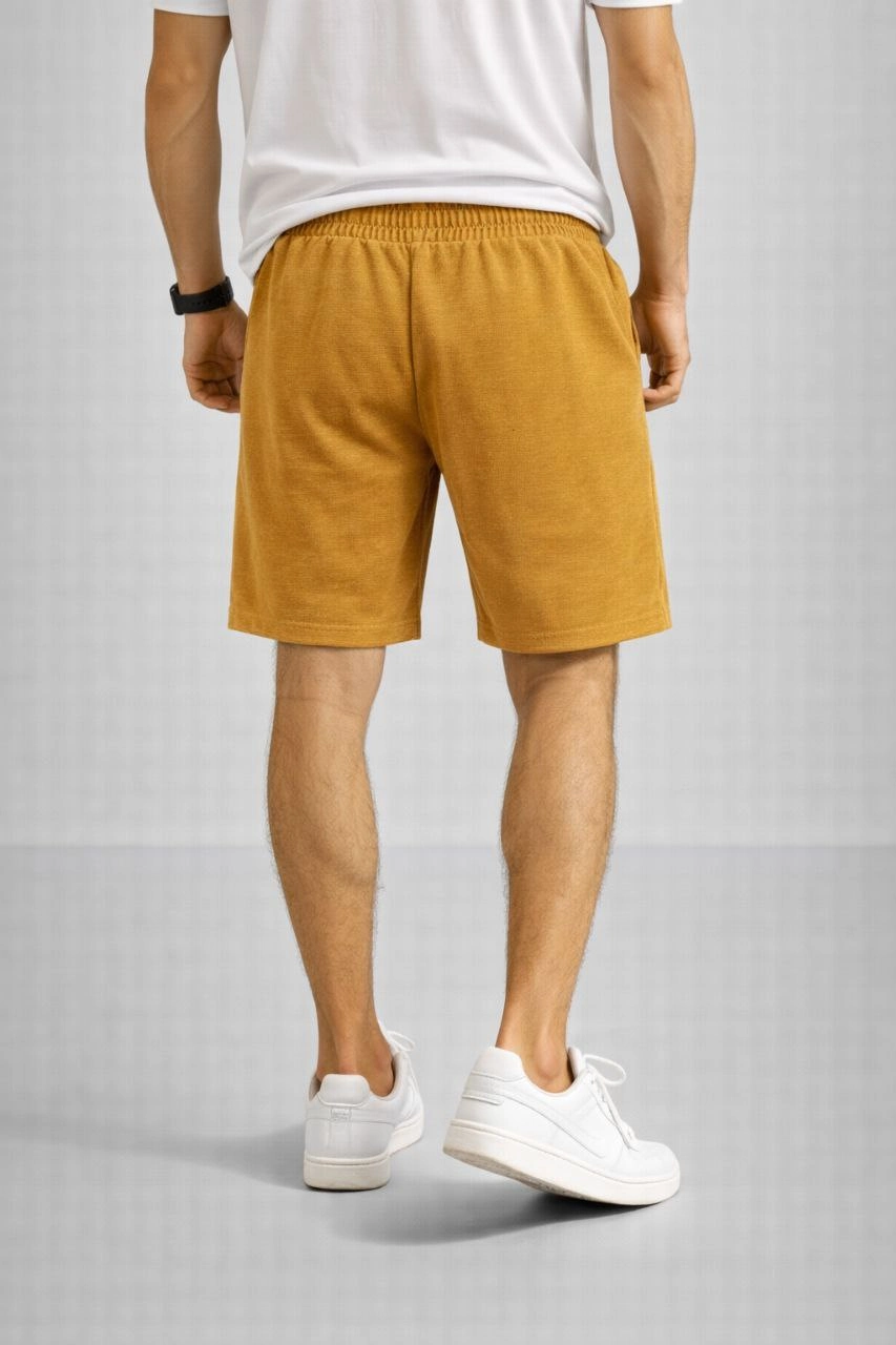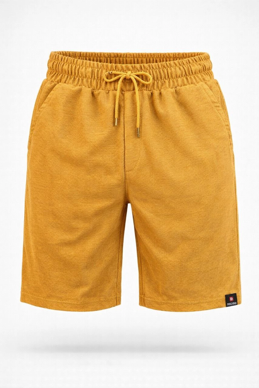 Erkek otoban Dokuma Şort Beli Lastikli Bağcıklı, Cepli, Rahat Kesim Günlük Yazlık Şort – Hardal