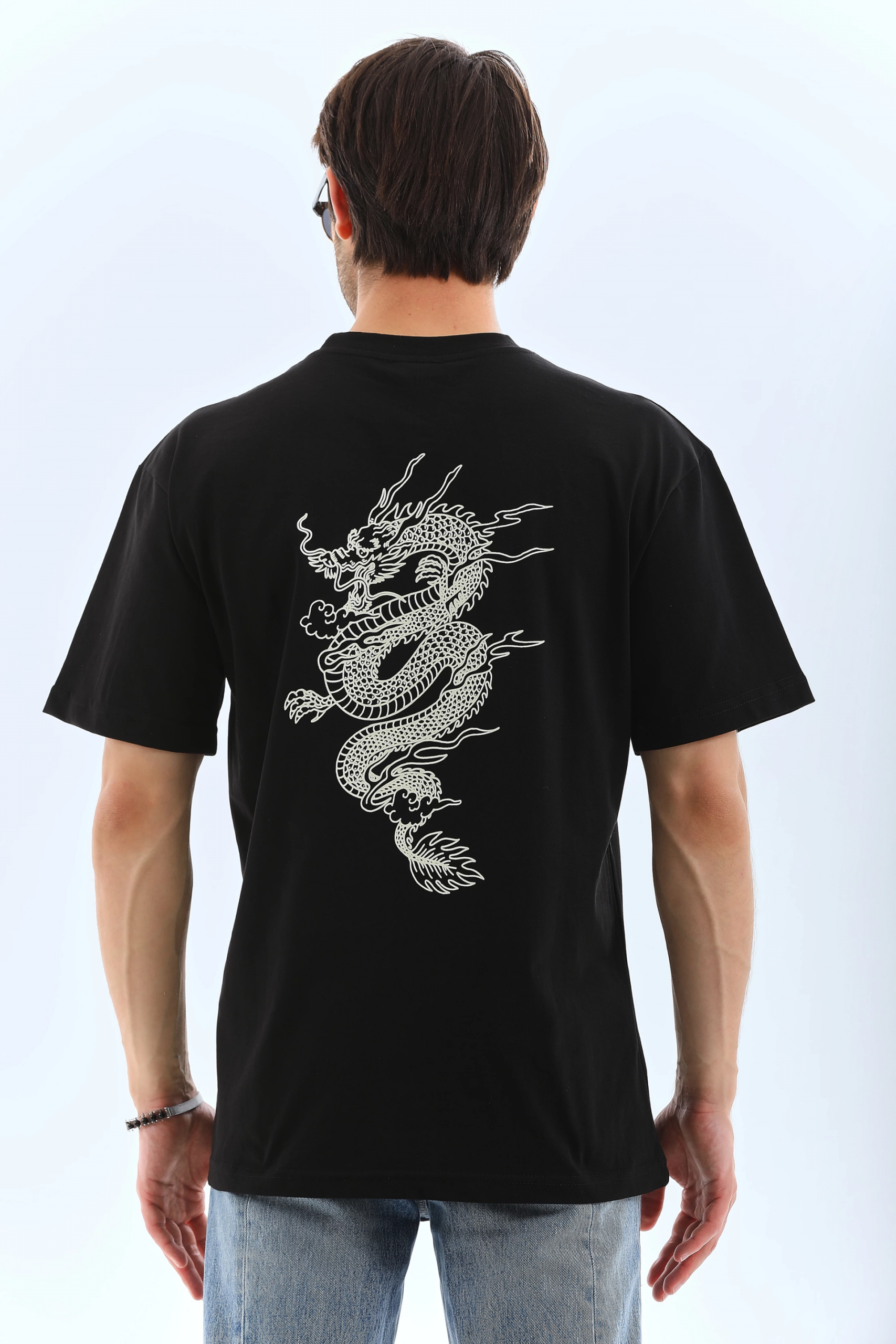 ERKEK Oversize Baskılı Bisiklet Yaka T-Shirt – Siyah