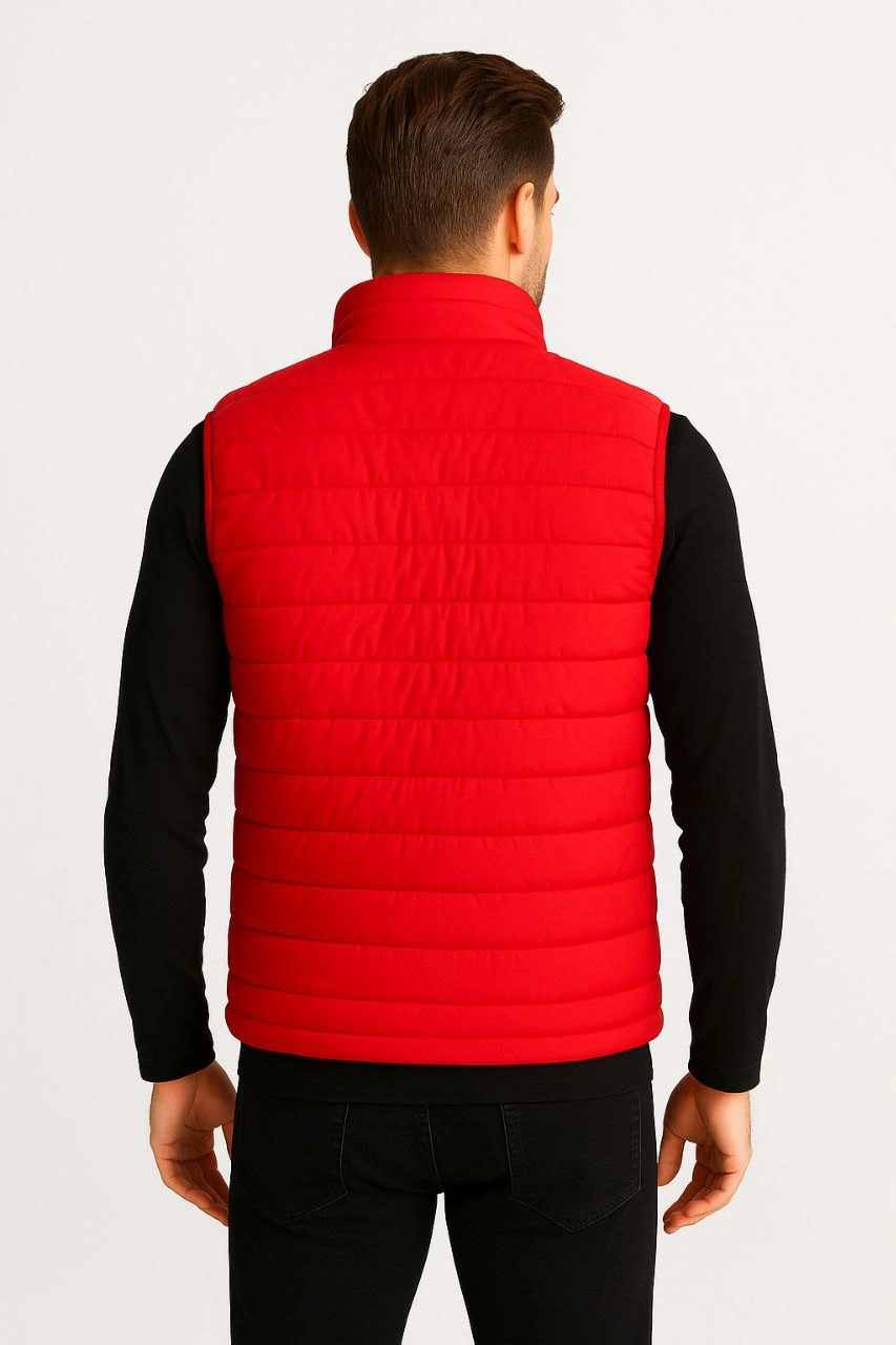 Erkek Şişme Fermuarlı Yelek Su itici Kapitone Astarlı Cepli Hafif Spor Kalıp – Kırmızı