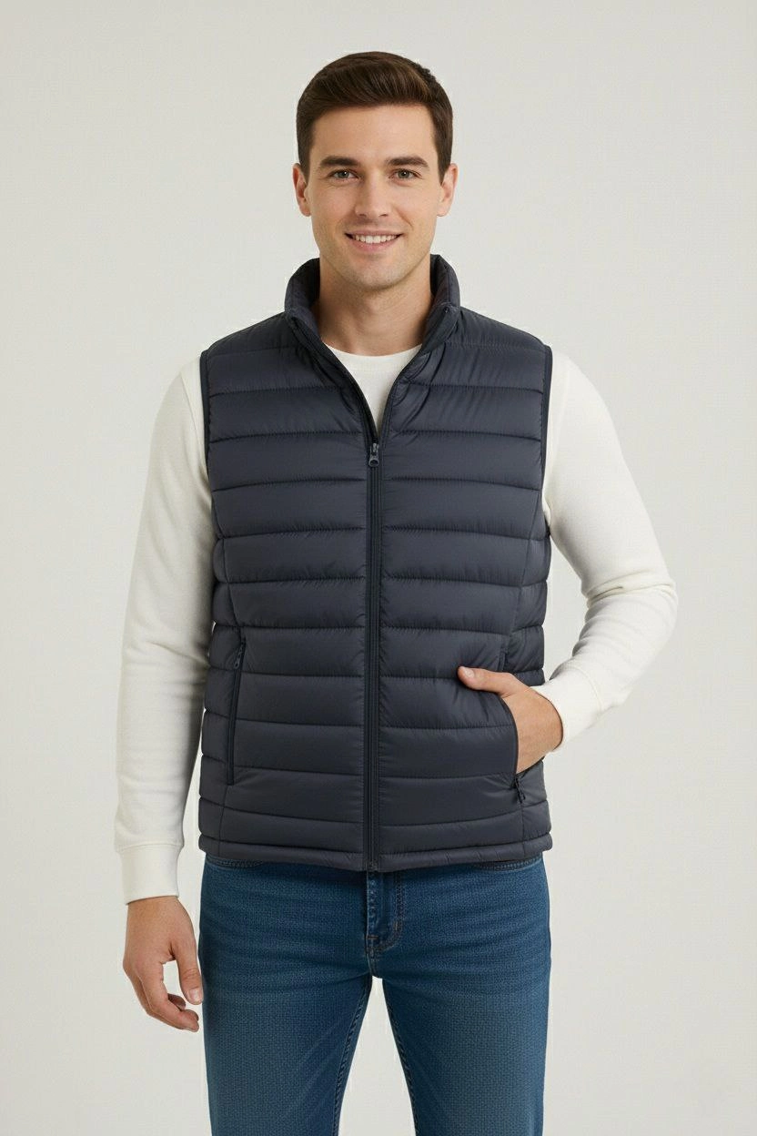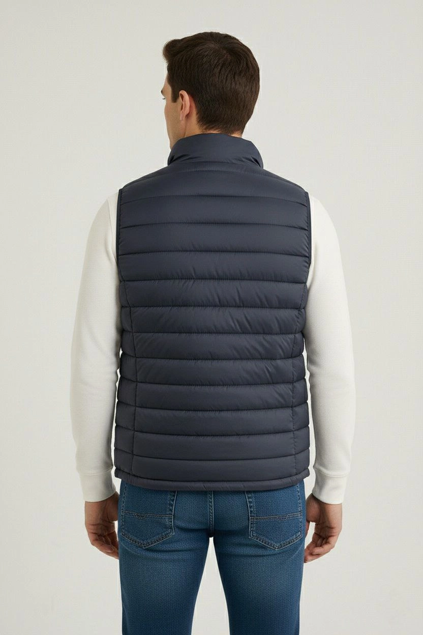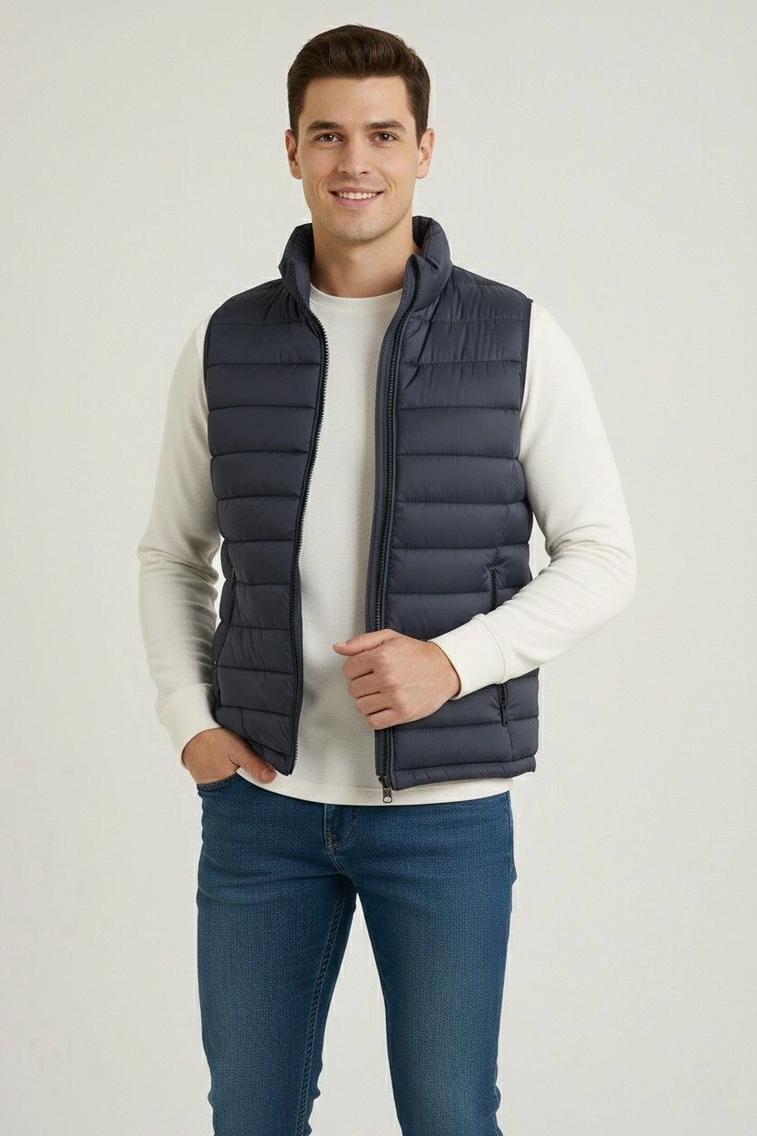 Erkek Şişme Fermuarlı Yelek Su itici Kapitone Astarlı Cepli Hafif Spor Kalıp – Lacivert