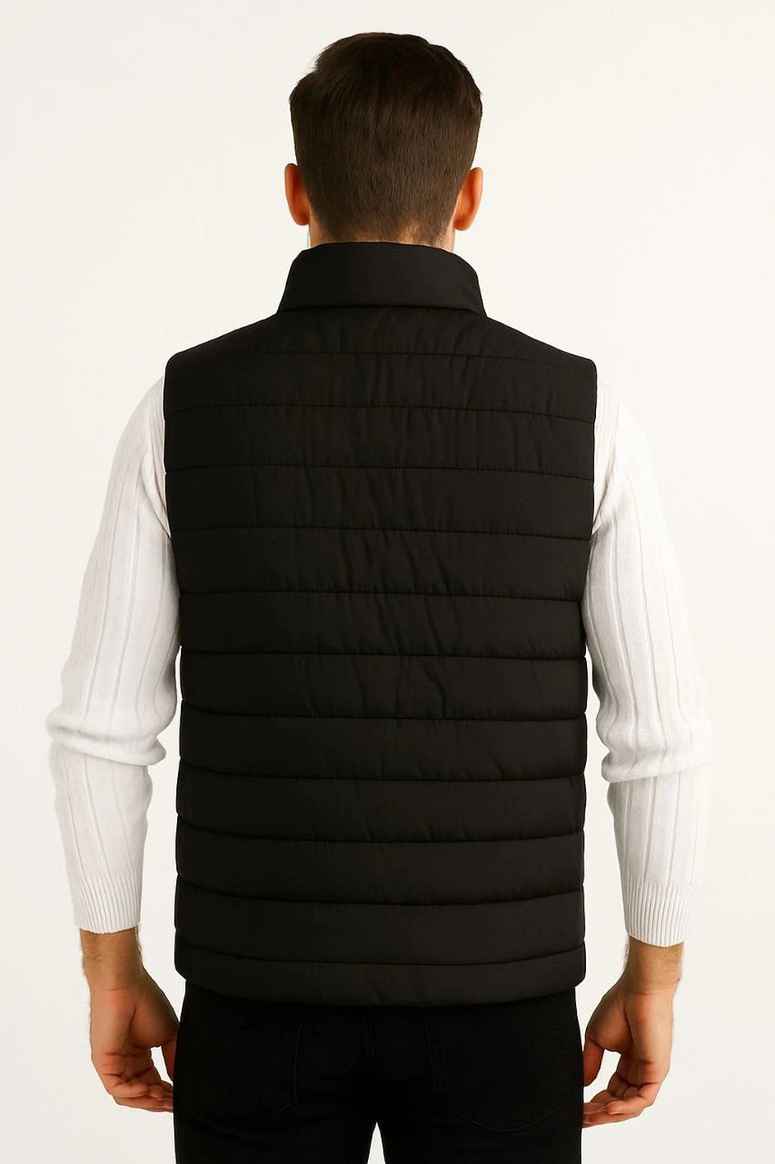 Erkek Şişme Fermuarlı Yelek Su itici Kapitone Astarlı Cepli Hafif Spor Kalıp – Siyah
