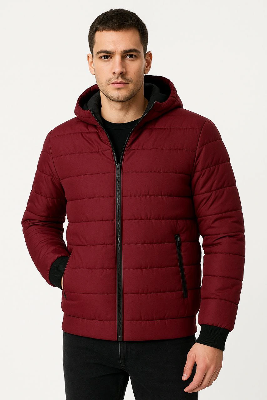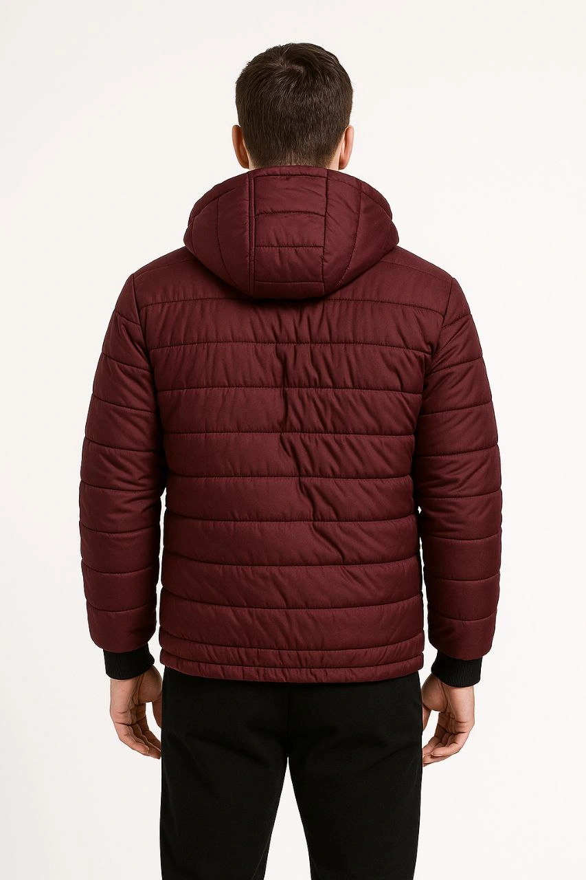 Erkek Şişme Kapüşonlu Fermuarlı Mont Su itici Kapitone Astarlı Cepli Kalıp – Bordo