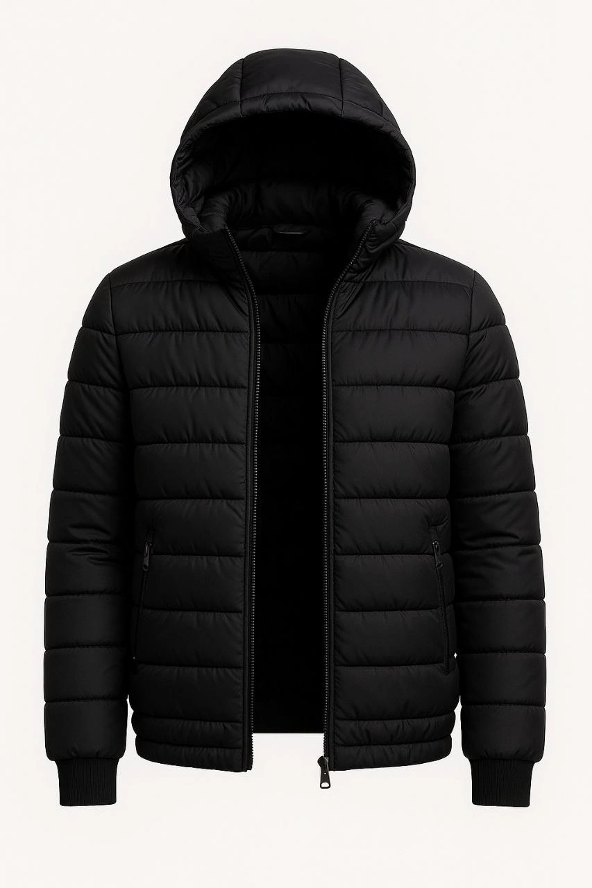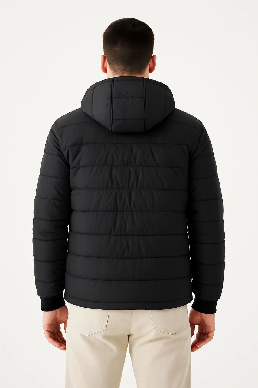 Erkek Şişme Kapüşonlu Fermuarlı Mont Su itici Kapitone Astarlı Cepli Kalıp – Siyah