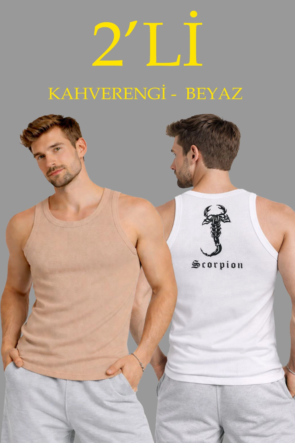 Be the first to review “Erkek Spor Fitilli Atlet 2’li Set Kahverengi ve Beyaz Slim Fit Kaşkorse Arka Baskılı Spor Atlet”