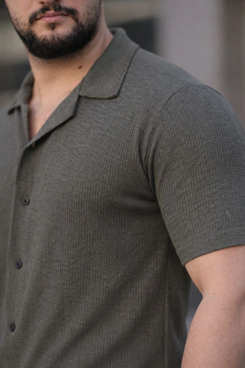Erkek Waffle Dokuma Açık Yakalı Düğmeli Regular Kalıp 3’lü Gömlek Seti – Siyah, Haki, Lacivert