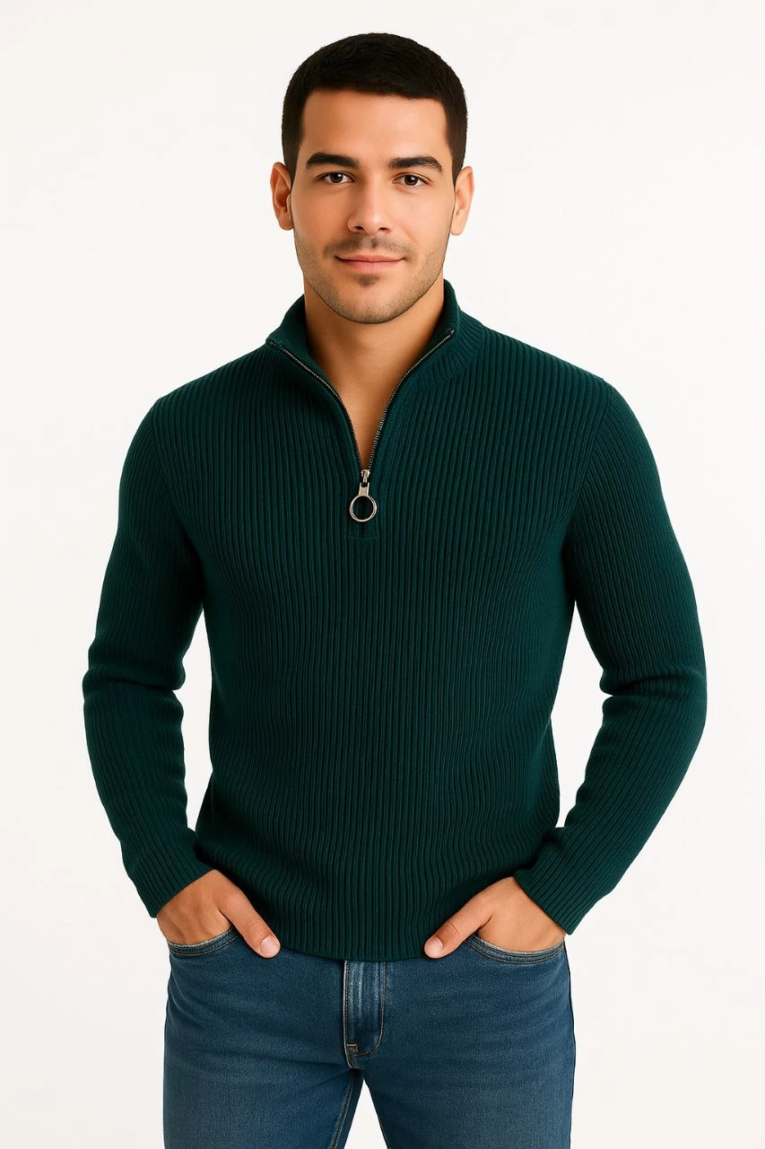 Be the first to review “Erkek Yarım Fermuarlı Triko Kazak Selanik Örgü Dik Yaka Pamuklu Dokuma Regular Fit – Haki”