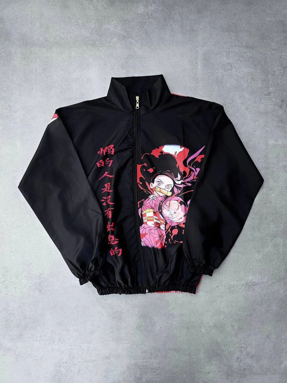 Şık dijital baskısıyla dikkat çeken bu rüzgarlık, kol ve etek kısmındaki lastikli detaylarıyla hem modern bir stil sunar