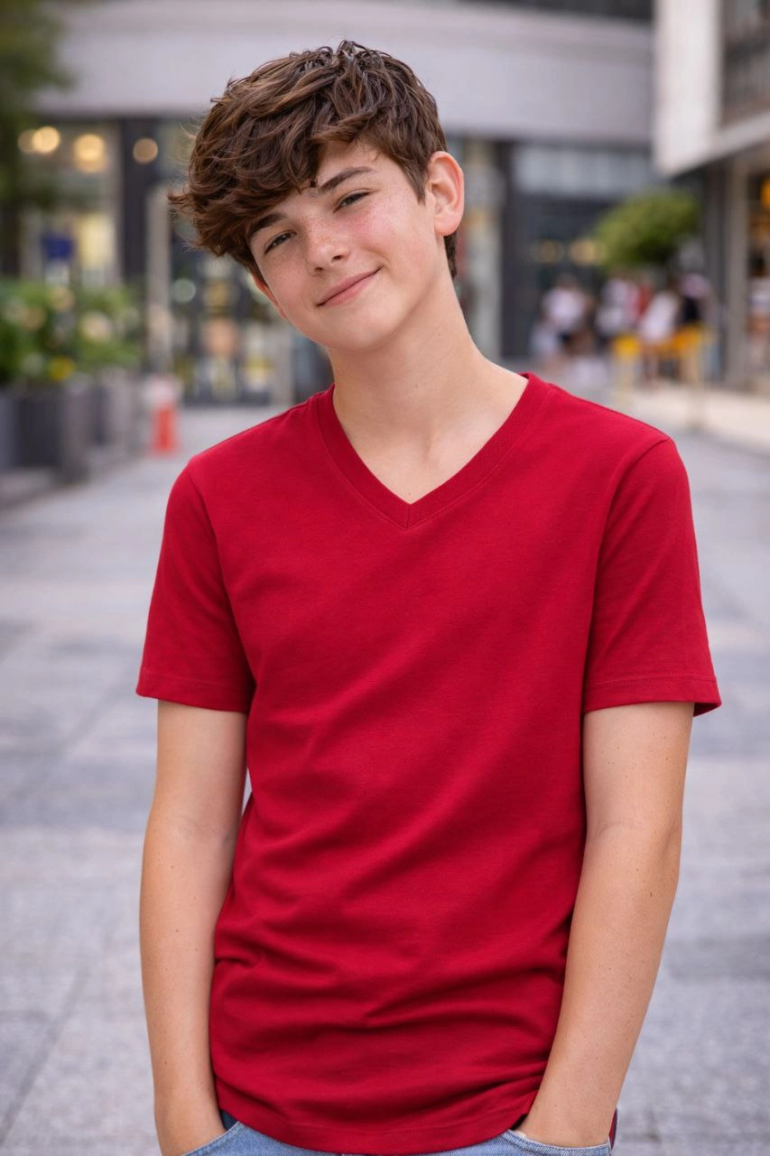 Genç Erkek Çocuk V Yaka Tişört Model – Bordo