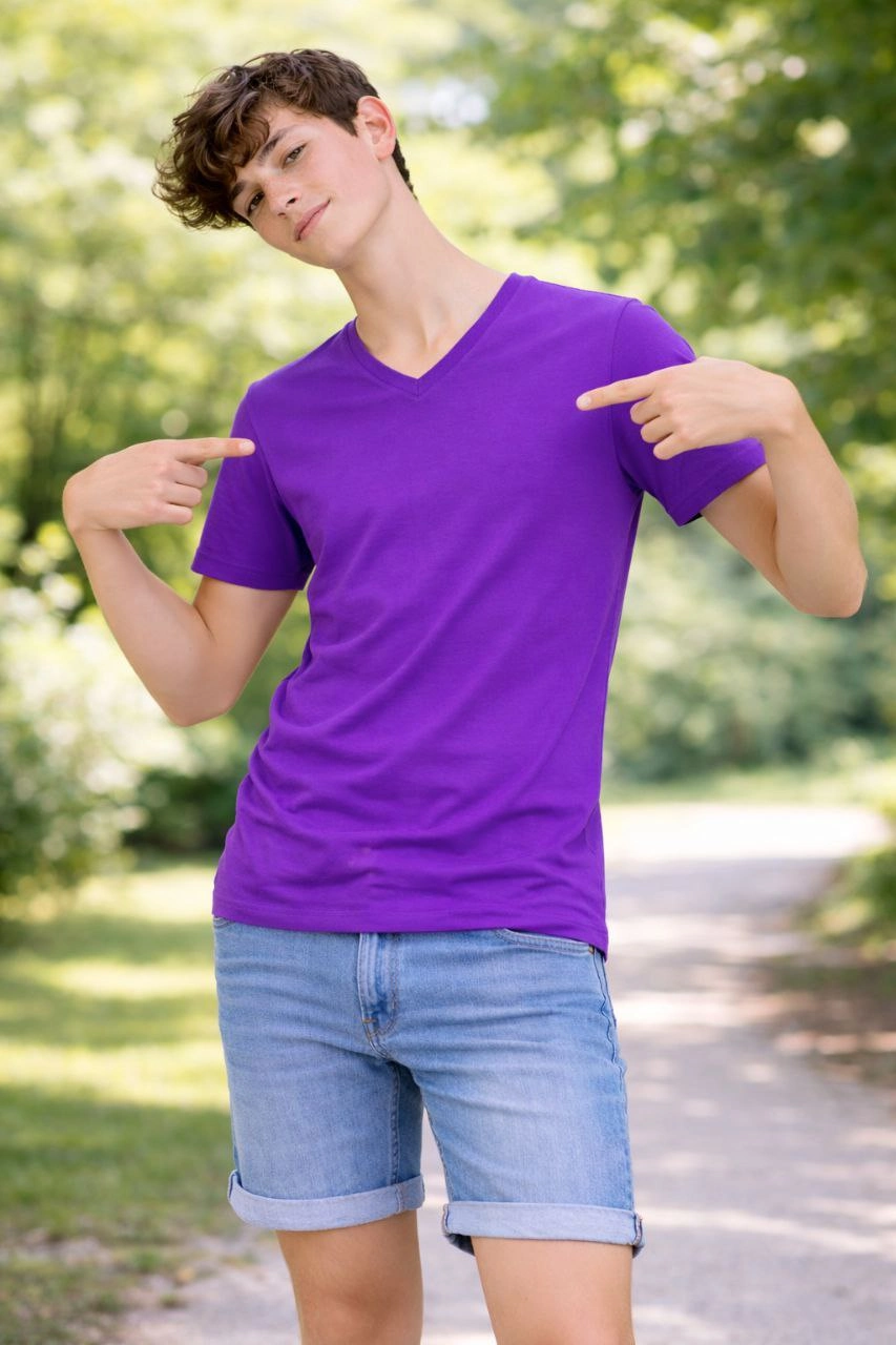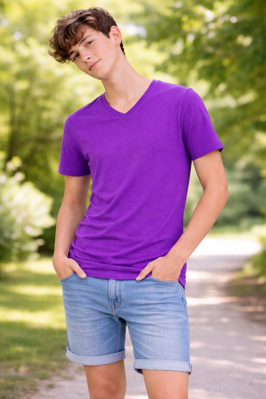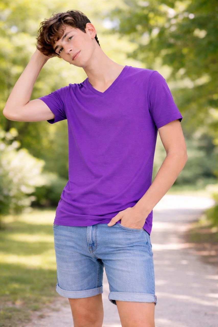 Genç Erkek Çocuk V Yaka Tişört Model – Mor