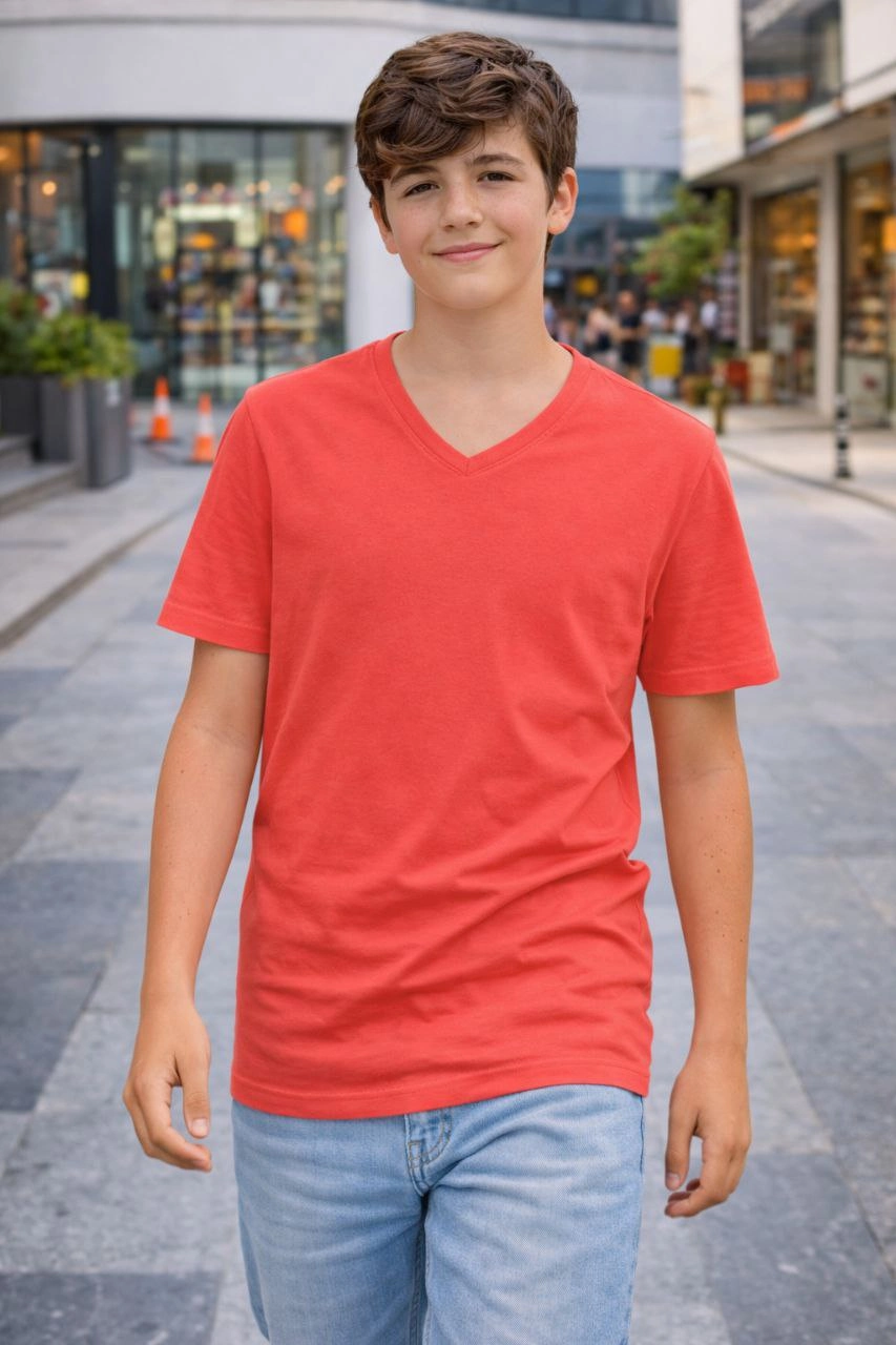 Genç Erkek Çocuk V Yaka Tişört Model – Nar Çiçeği