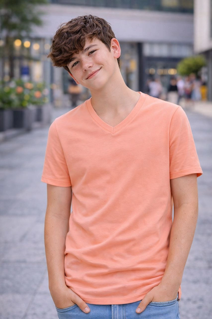 Genç Erkek Çocuk V Yaka Tişört Model – Toz Pembe