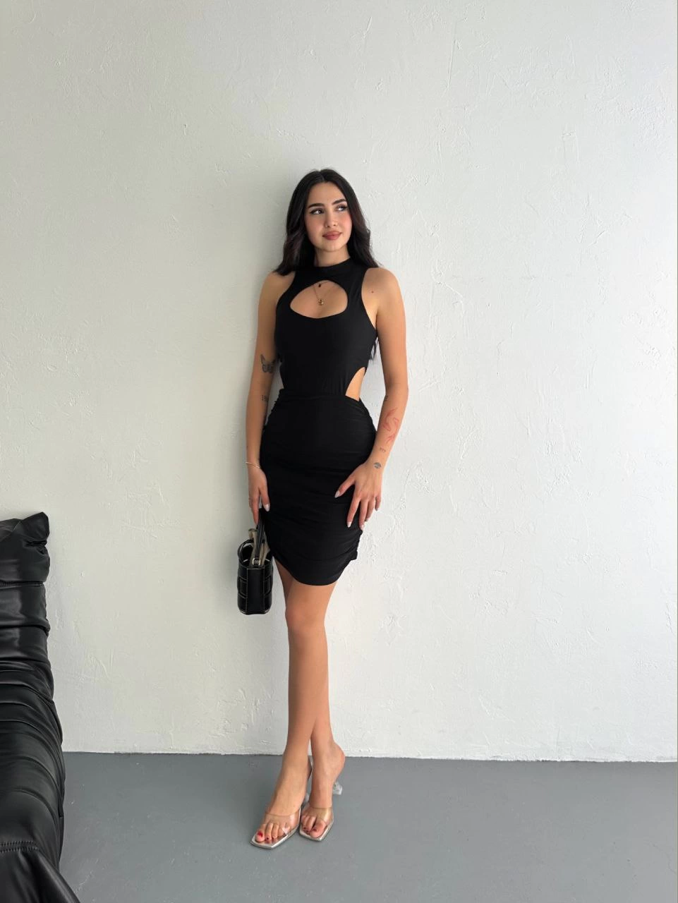 Göğüs ve Yanlar dekolteli Kolsuz Boy Elbise – Siyah