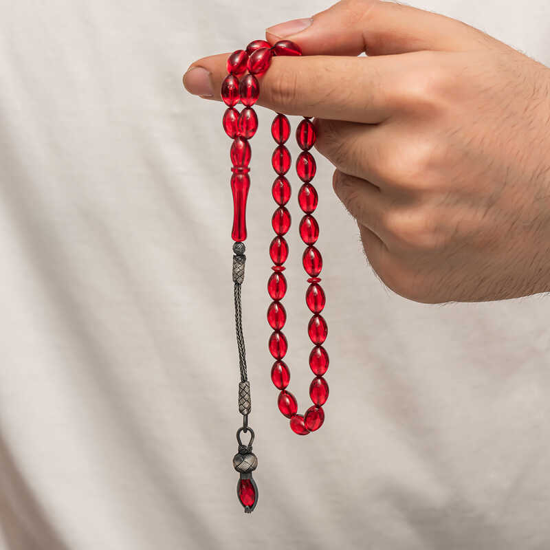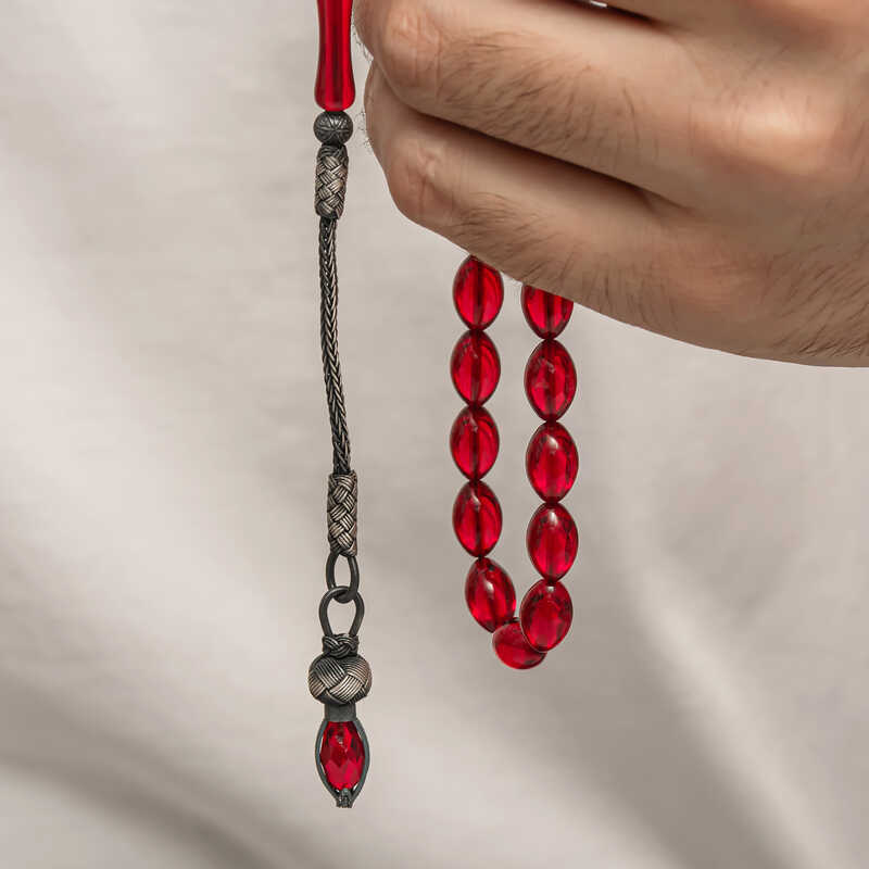 Kehribar, çam ağacı reçinesinin toprak altında uzun yıllar boyunca birikerek oluşan bir maddedir. Hemen hemen taş ile aynı sertliktedir fakat yoğunluğu düşüktür. Çam kokusu yayar. Oluşumu uzun zaman aldığından ve yapay olarak yapılamadığından değerli bir maddedir. Sıkma kehribar ise kehribar taşından farklı olarak onun özelliklerini taşıyan, görüntü itibariyle ona benzeyen fakat gerçek olmayan bir malzemedir. Ülkemizde ve dünyanın bir çok yerinde kehribar taşından çeşitli malzemeler üretilmiştir. Ülkemizde en yaygın olarak tesbih üretilmektedir. Kehribar tesbihler elde ısındıkça kehribar benzeri bir koku verir ve renk değiştirir. Bir çok rengi vardır. Hatta iki rengin birleşiminden oluşan kehribar tesbih modelleri de vardır. Genellikle gümüş püskül ile kullanılır veya sistemli olarak da kullanılabilir. Ülkemizin güzide tesbih ustaları bu malzemeyi sıklıkla işlemek suretiyle çeşitli sanat eserleri meydana getirirler. Bu tesbihler de koleksiyonerler tarafından alınıp satılmaktadır. Gümüş 1000 ayar kazaz püsküllü sıkma kehribar tesbih modeli de günlük hayatta kullanılabilecek çok şık bir tesbih çeşididir. Özel günlerin vazgeçilmez hediyesi sıkma kehribar tesbihler erkekler için doğum günü, sevgililer günü ve babalar günü gibi özel zamanlarda hediye olarak tercih edilebilir. Gümüş kazaz püsküllü sıkma kehribar tesbih modeli diğer kehribar tesbih modellerinde olduğu gibi tamamen el emeği ile imal edilmiştir.