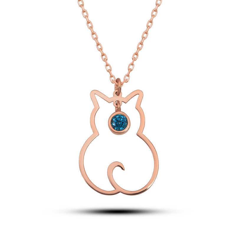 Gümüş Aralık Ayı Doğum Taşı Kedi Kadın Kolye