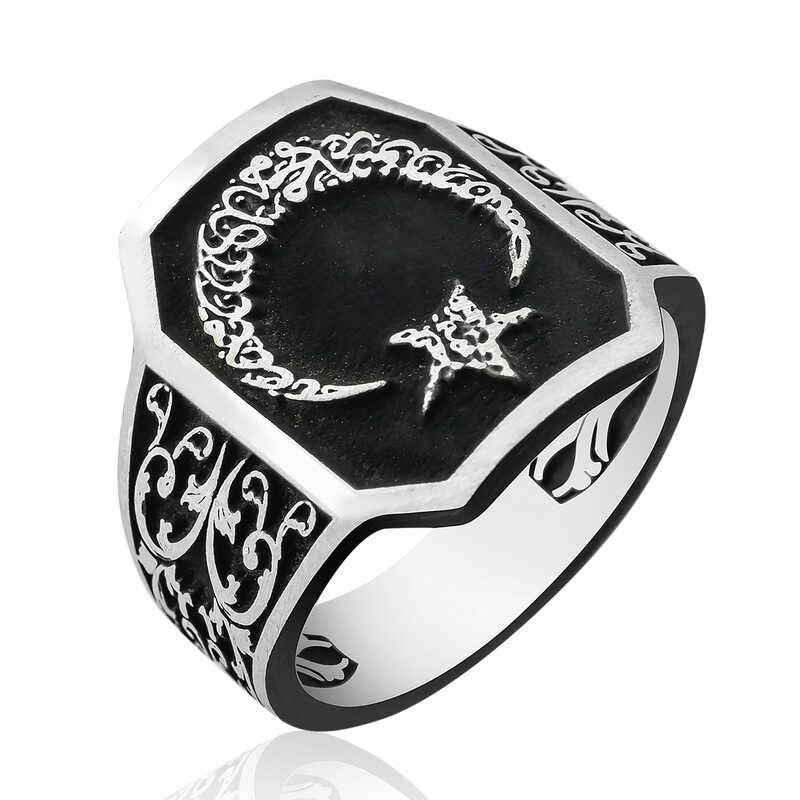 Gümüş Ay Yıldız Erkek Yüzük