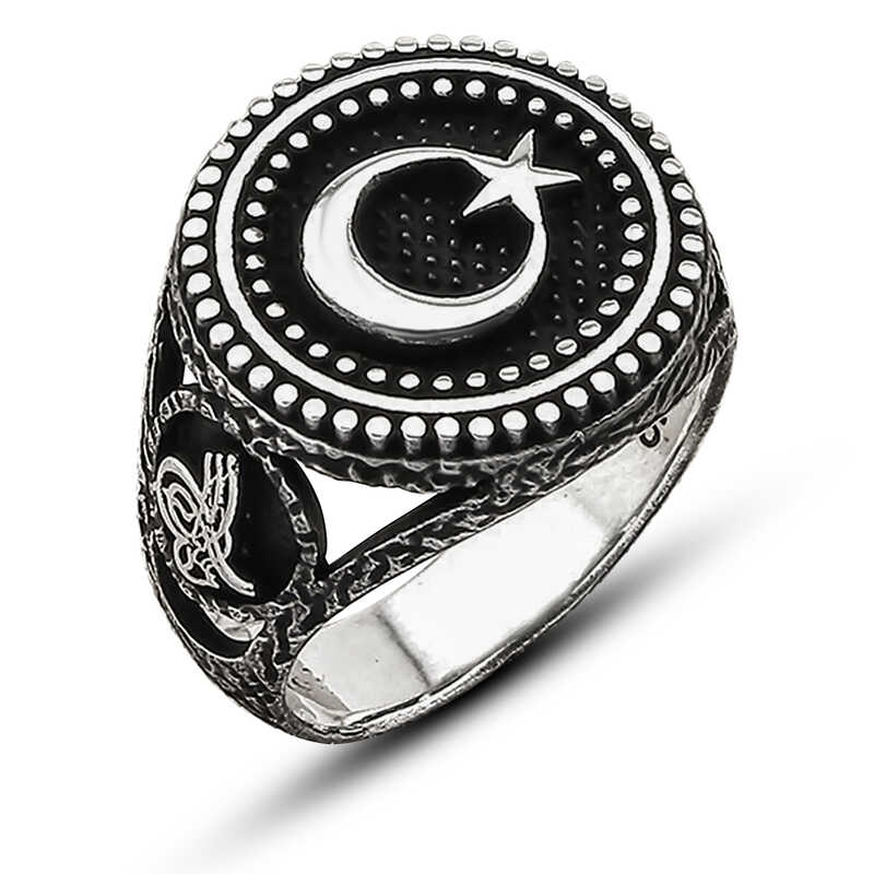 Gümüş Ay Yıldız Erkek Yüzük
