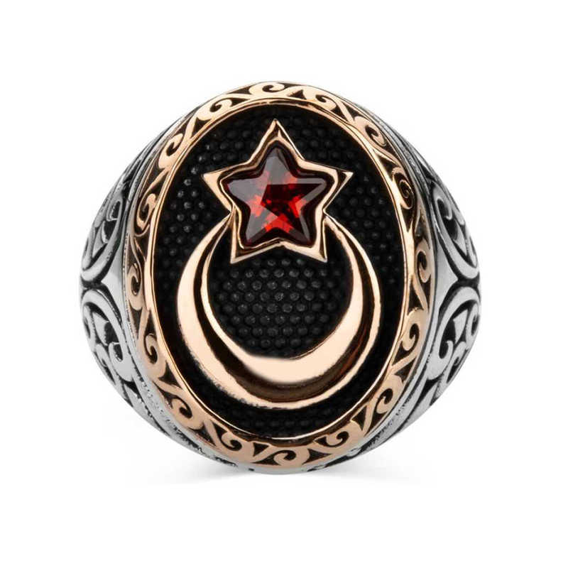 Gümüş Ay Yıldız Erkek Yüzük