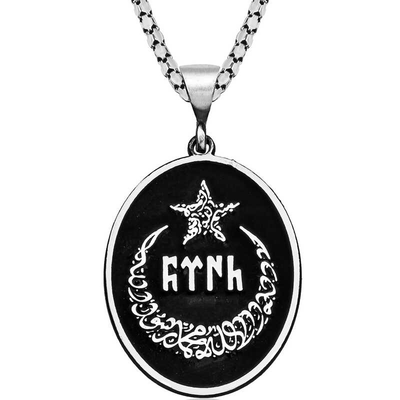 Gümüş Ay Yıldız İçerisi Göktürkçe Türk Yazılı Kolye
