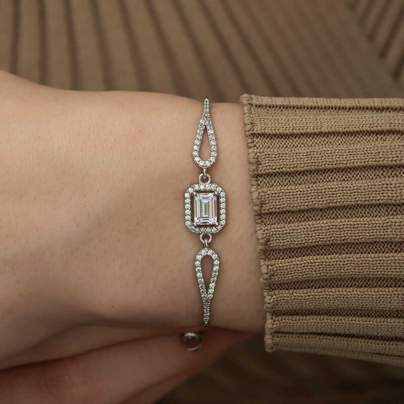 Modaya uyumlu şekilde tasarlanan gümüş baget bileklik modellerini hem gündelik yaşantınızda hem özel gün ve gecelerinizde şık bir şekilde kullanabilirsiniz. Yenilikçi her yaştan kadının beğenisine hitap eden ürünlerle kombinlerinizi tamamlayabilirsiniz. Her biri farklı bir stile hitap edebilen tasarımlarla sizler de spor, klasik ve alternatif giyim tarzlarınıza uygun modellerimizi tercih edebilirsiniz. Bu şık bileklik; doğum günü hediyesi, sevgililer günü hediyesi veya özel günlerde tercih edilebilecek mükemmel bir seçenektir. Gümüş baget taşlı bayan bileklik 925 ayar gümüşten imal edilmiştir. Bu bileklik üzerine rodyum kaplama yapılmıştır. Rodyum kaplama yapılan ürünler parlaklığını uzun süre muhafaza eder, oksitlenmesini geciktirir. Tüm gümüş bayan bileklik modellerinde olduğu gibi gümüş baget taşlı bayan bileklik modeli de el emeği ile üretilmiştir. Gümüş ve değerli taşlar nedeniyle belirtilen ortalama ürün ağırlığında ± %10 sapma olabilmektedir.
