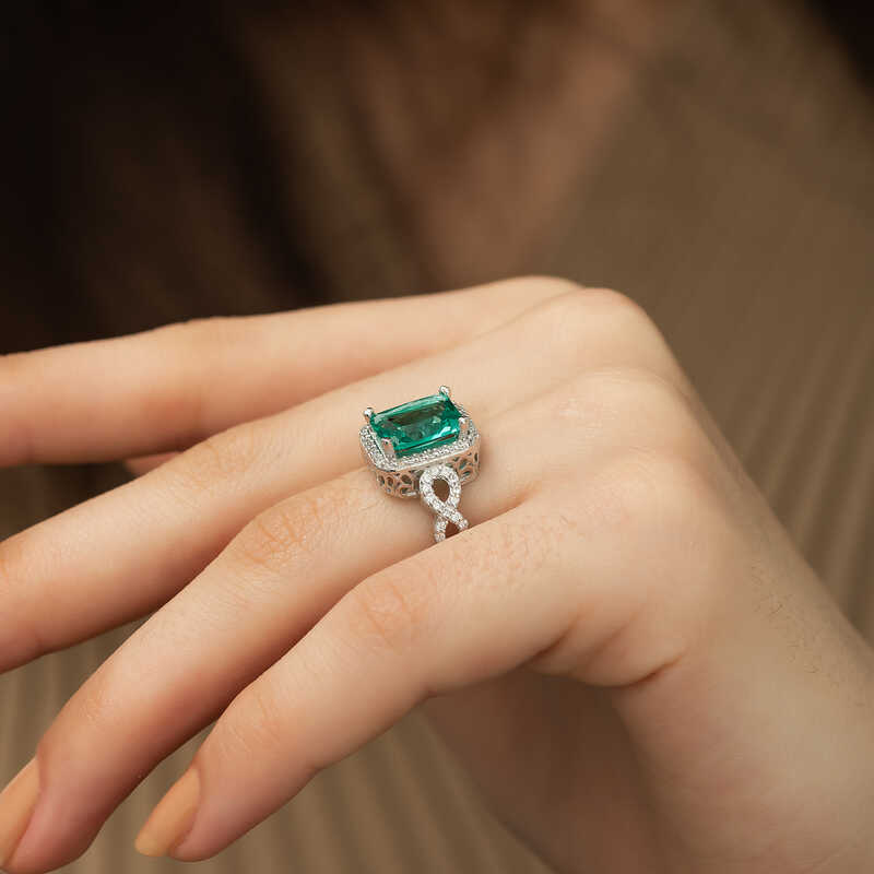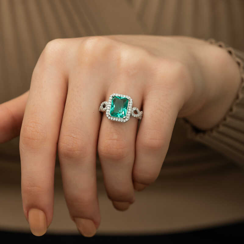 Gümüş Baget Kare Bayan Yüzük