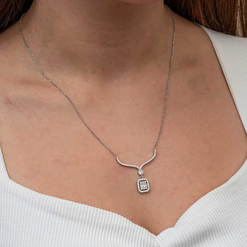 Gümüş Baget Taşlı Gerdanlık Model Kadın Kolye