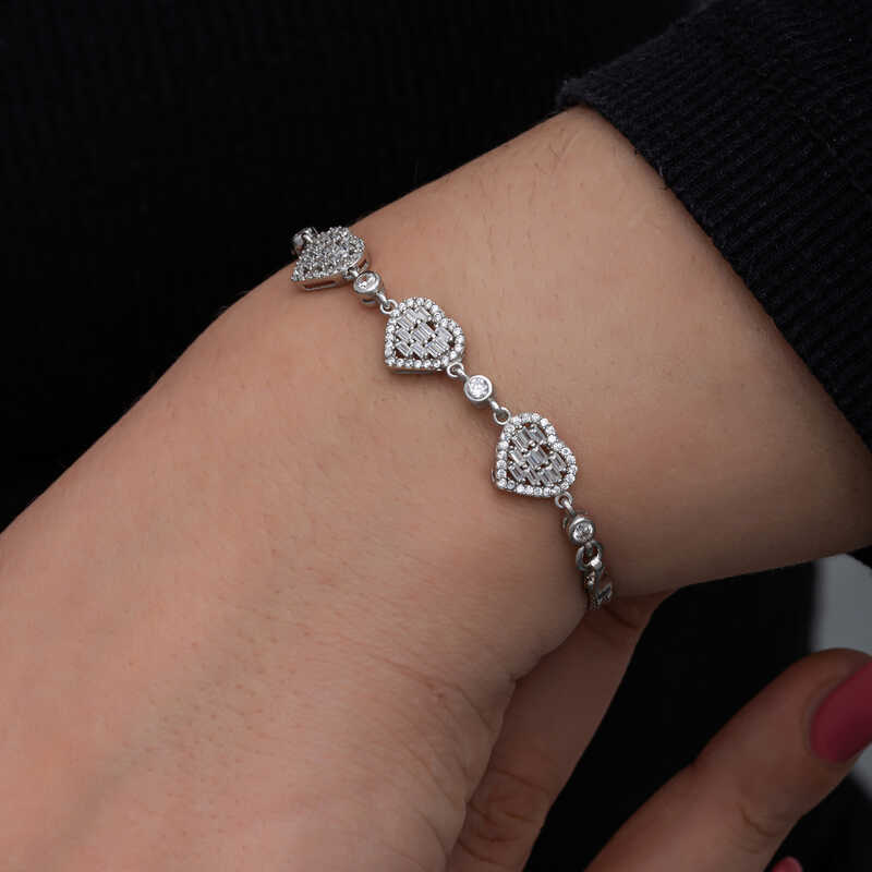 Gümüş Baget Taşlı Kalp Kadın Bileklik