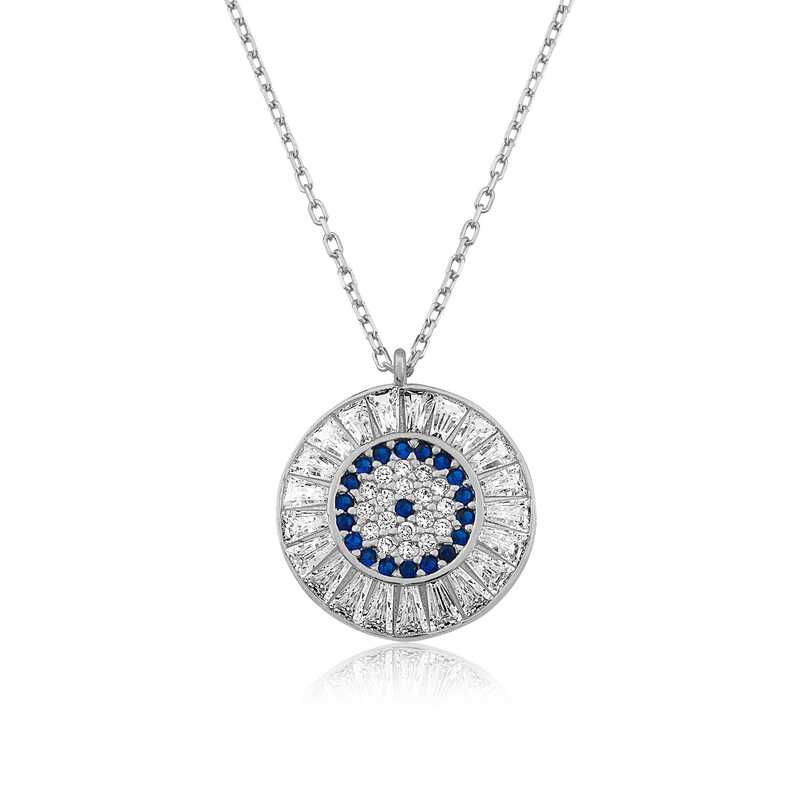 Gümüş Baget Taşlı Nazar Kadın Kolye