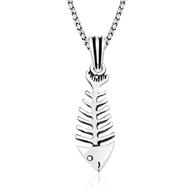 Gümüş Balık İskeleti Kolye