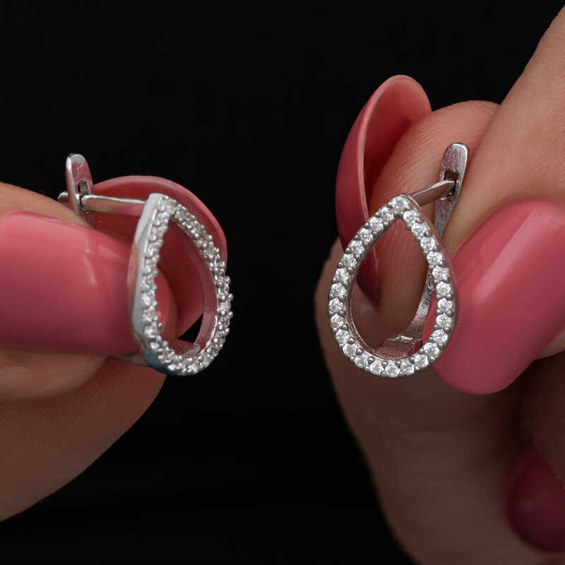Gümüş Beyaz Taşlı Damla Kadın Küpe