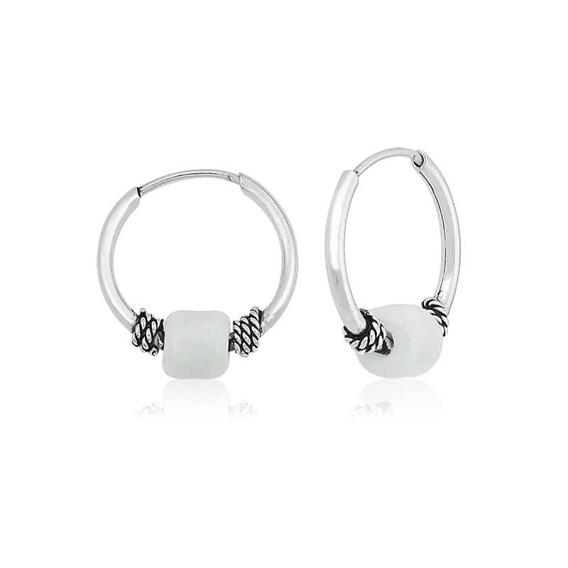 Gümüş Beyaz Taşlı Halka Küpe