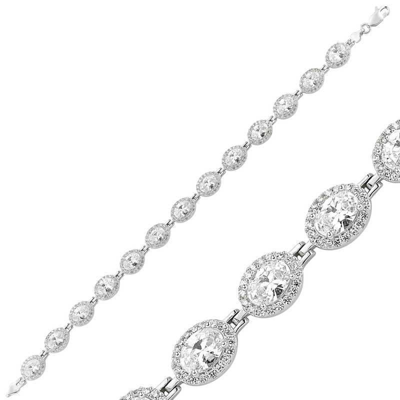 Gümüş Beyaz Taşlı Su Yolu Bayan Bileklik