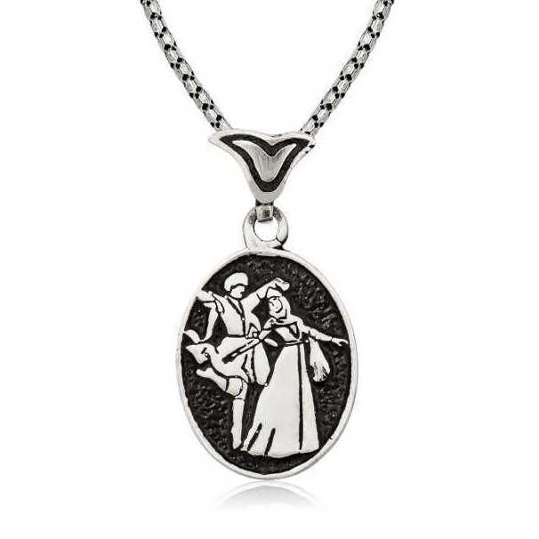 Batı Kafkas Sıradağlarının eteklerinde ve Terk ile Kuban nehirleri yataklarına kadar uzanan bayır ve vadilerde oturan bir kavim. Çerkezlerin ne zaman Kafkasya’ya gelip yerleştikleri bilinmemektedir. Avrupa’da yaşamış vahşi kavimlerle alakaları olmadığı gibi, Asya’dan gelen Moğollarla da bir ilgileri yoktur. Kafkasya’nın en güzel ve en mükemmel kıyafetli, soylu bir milletidir. Eski zamanlardan beri Kafkasya’yı fetheden devletlere tabi olan Çerkesler büyük devlet kuramamışlardır. Ancak hiçbir milletin idaresinde kendi dil ve kültürlerini kaybetmemişlerdir. Çerkes kolyesi 925 ayar gümüşten imal edilmiştir. Gümüş üzerinde oksit kaplama yapılmıştır. Oksit kaplama yapılan çerkes kolyeleri otantik bir görünüme sahip olur. Çerkes kolye modelleri el emeği ile üretilmiştir. Gümüş ve değerli taşlar nedeniyle belirtilen ortalama ürün ağırlığında ± %10 sapma olabilmektedir.